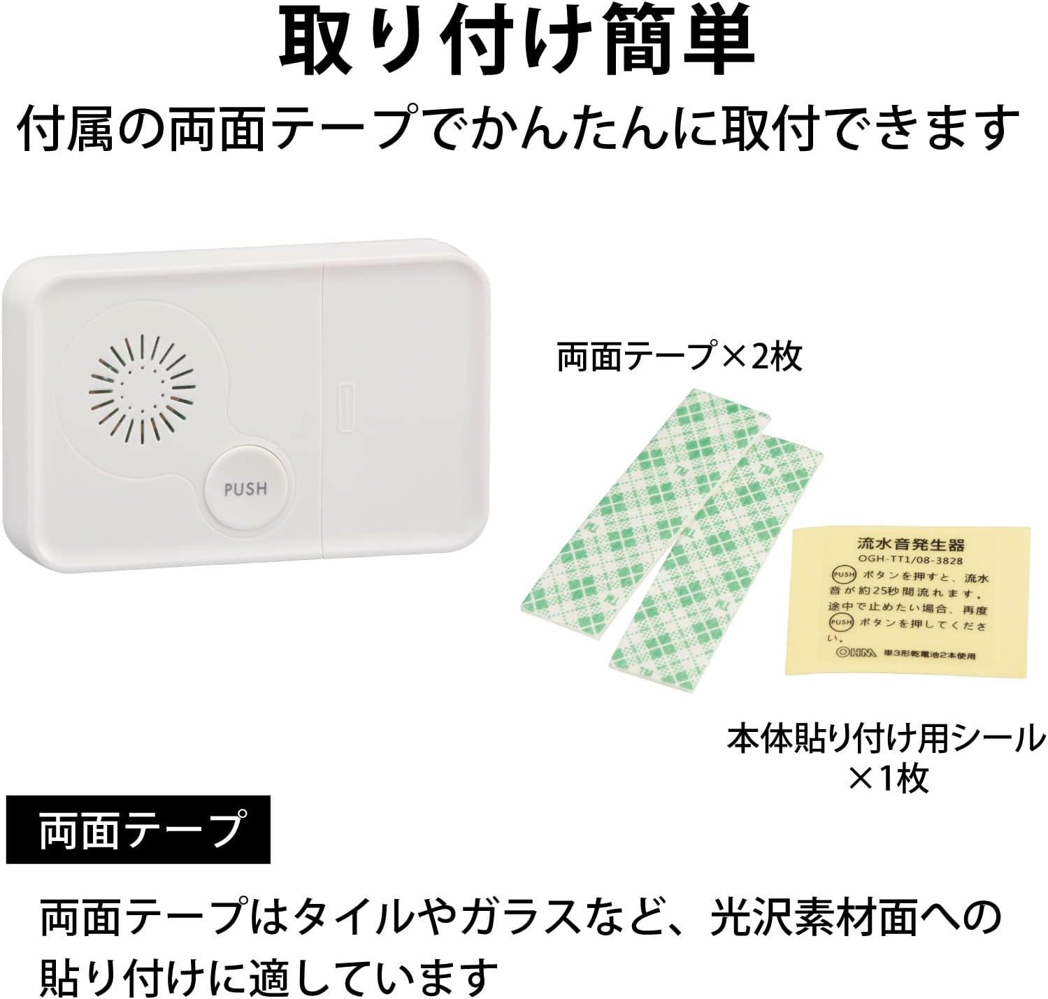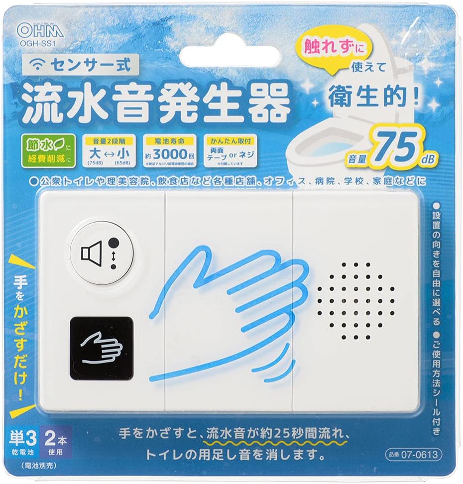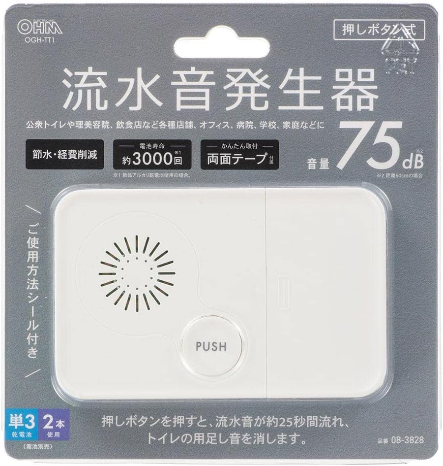 日本,OHM電機,固定式流水聲發生器,OGH-TT1,OGH-SS1,室內流水聲裝置,自然流水聲裝置,連續流水聲裝置,室內水聲機,人工水聲機,水流音效機,戶外水聲播放機,固定水聲播放設備,音姬,馬桶音效機,音姬節水器,音姬沖水聲發生器,自動音效機,隱私音效機,廁所音姬,音姬環保節水裝置,洗手間聲音機,女士專用,女性專用,馬桶沖水聲設備,廁所沖水聲模擬器,隱私裝置,衛生間音效裝置,省水型音姬設備,水聲裝置,感應式,按壓式,電池式,乾電池,遮蓋如廁聲音,提升如廁舒適度,節水環保,智能音效設備,模擬沖水聲,居家衛浴