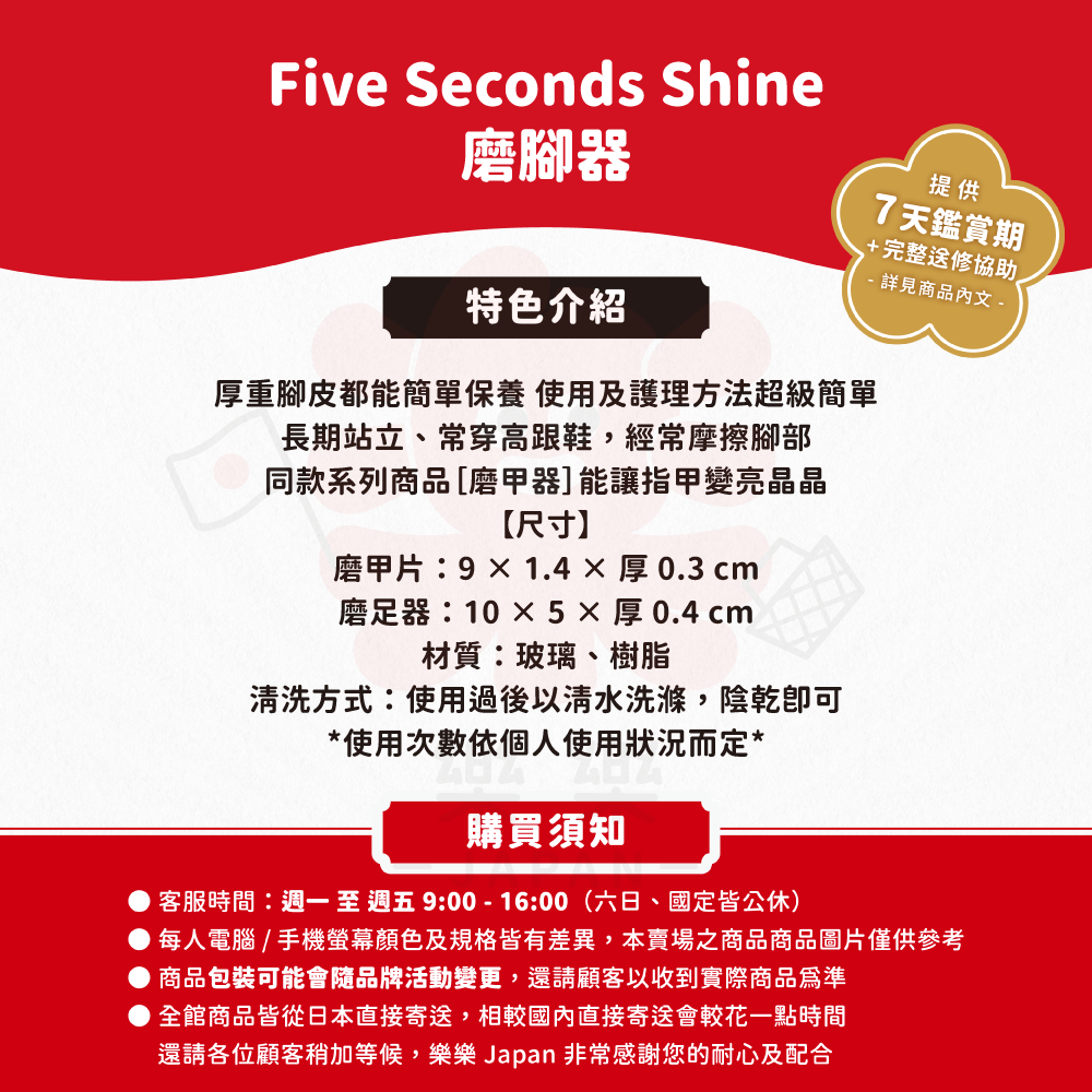 日本,Five,Seconds,Shine,磨腳器,磨腳板,磨砂棒,磨甲片,磨腳皮,足部去角質磨砂棒