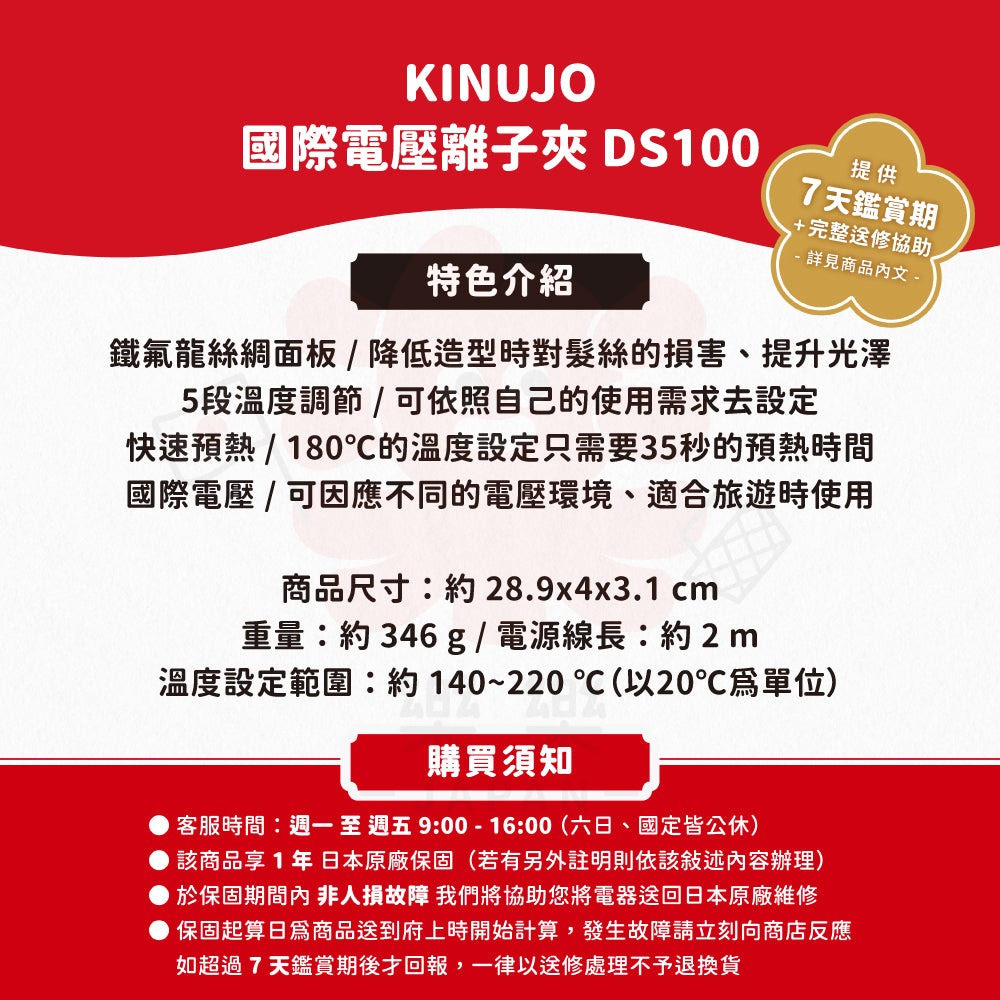 KINUJO,娟女,國際電壓離子夾,DS100,W,worldwide,model,DS100-BK,美髮離子夾,捲髮器,捲髮夾,海外通用版,直髮夾,美髮造型,平板夾,離子夾,DS100-W,DS100W,DS100BK