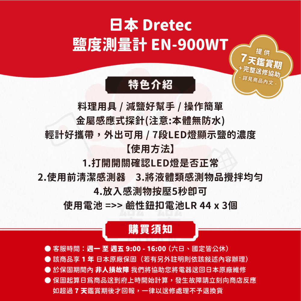 Dretec,健康塩分計,鹽度測量計,EN-900WT,鹽度計,鹽分計,鹹度檢測,電子鹽度計,鹹度計