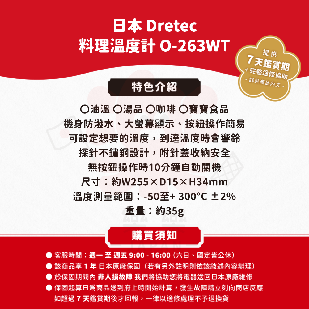 Dretec,料理溫度計,O-263WT,食物溫度計,料理電子溫度計,測油溫,測水溫,O-263,烘培溫度計