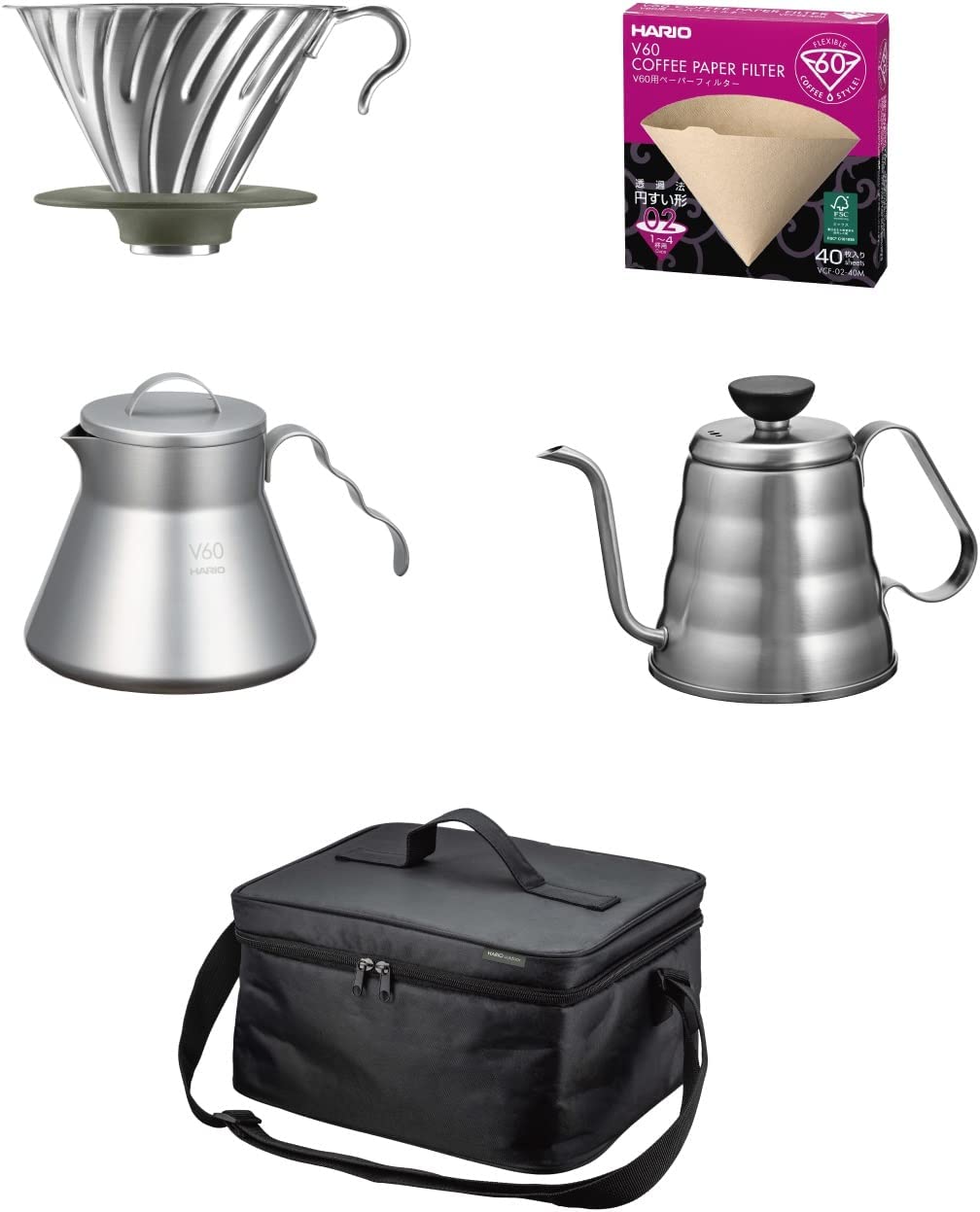 含關稅,日本,HARIO,V60,戶外用手沖咖啡基本組,O-VOCB,附旅行收納袋,露營包,咖啡壺,細口壺,濾杯