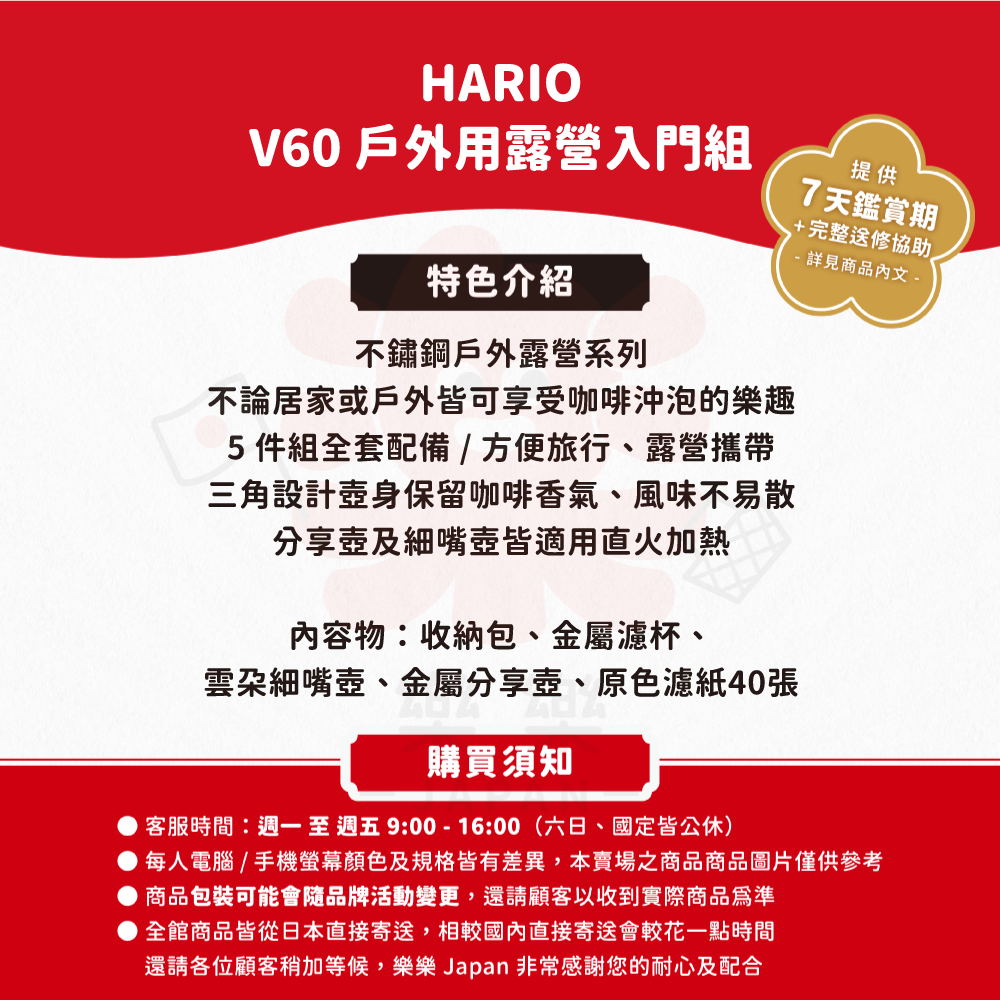 ※詳細說明請見樂樂Japan 購物保障・保固須知