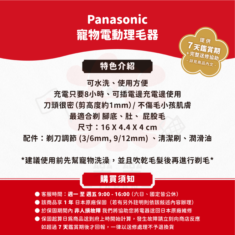 國際牌,ER807PP,寵物用,電動剪髮器,電動理毛器,充電式,犬用,寵物美容,理毛,除毛剪,剃毛器,ER807