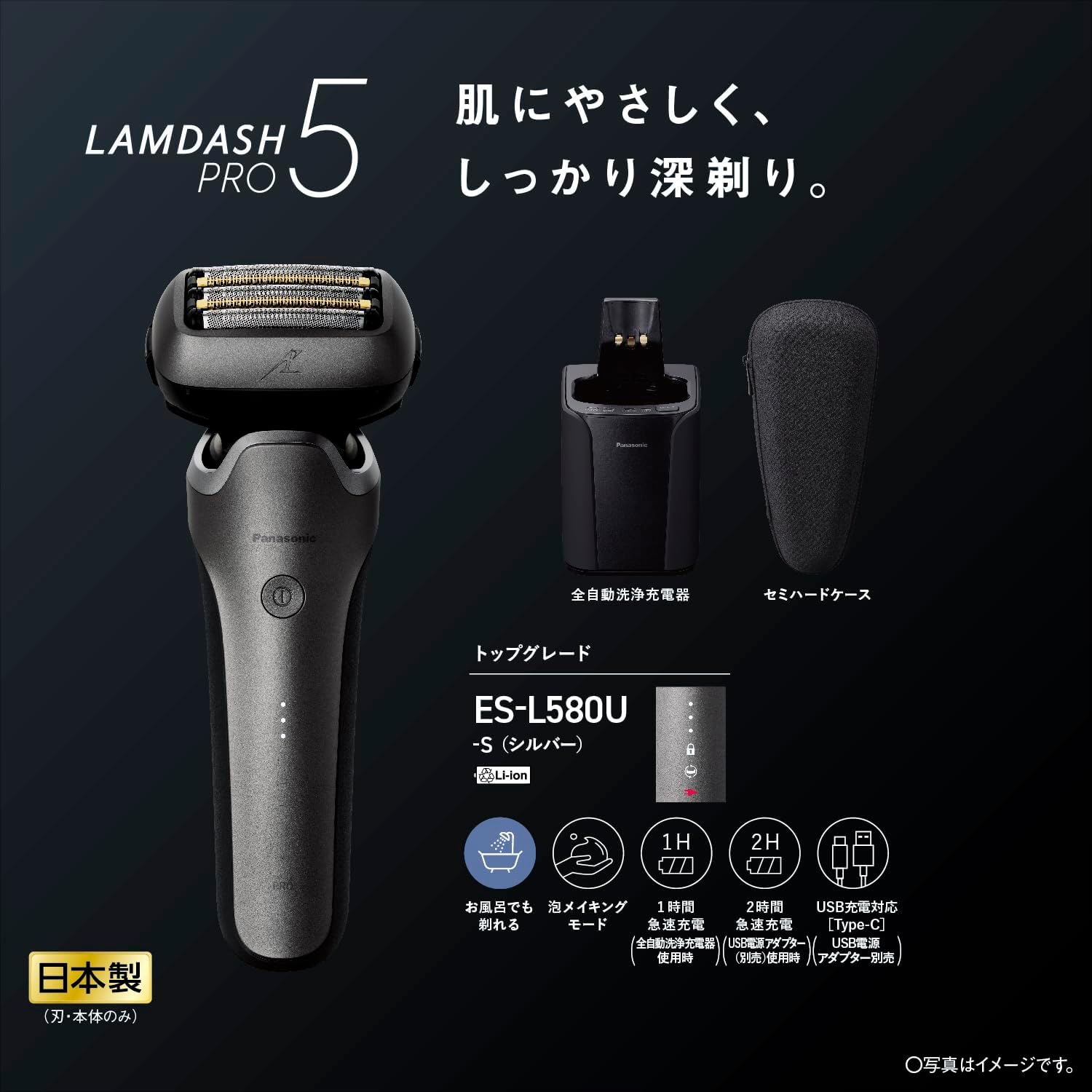 ES-L580U,電鬍刀,刮鬍刀,電動刮鬍刀,五枚刃電鬍刀,Lamdash PRO,ES-L580U-S,ES-L580U-K,五枚刃系統,Lamdash AI,鬍鬚濃密度感應,全自動清洗充電器,3D彈性貼面,銳角奈米邊緣塗層刀刃,鬢角修剪器,100%防水設計,乾濕兩用,充電式,快速充電,充電顯示,旅行收納盒,日本製,銀色,黑色,產品優勢與效益,深層清潔,徹底刮淨,舒適剃鬚,溫和不刺激,減少肌膚負擔,剃淨難剃部位,俐落造型,省時高效,延長使用壽命,方便攜帶,高效充電,智慧科技,品質保證,目標客群,男性,商務人士,追求效率,注重外觀,敏感肌膚,經常旅行,父親,男友,30歲以上,推薦,五枚刃比較,日本製,父親節禮物,男友禮物,生日禮物,刮鬍刀推薦,剃鬚刀,ES-L570D,ES-L570W,ES-L550D,ES-L550U,ES9510,ES-LV9W,ES-LV7W,ES-LV7J,ES-LV5W,ES-LV5J,日本,電動修鬍器,電動修鬍刀,修鬍器,修鬍刀,乾刮,濕刮,乾濕刮,造型器,鬍子造型,鬍鬚修整,修整造型,美容刀,修容刀,修容,理容,美容家電,ES-LV97,ES-LV67,日本製,Panasonic,國際牌,新密著5刀頭,AI智能電動刮鬍刀,ES9510
