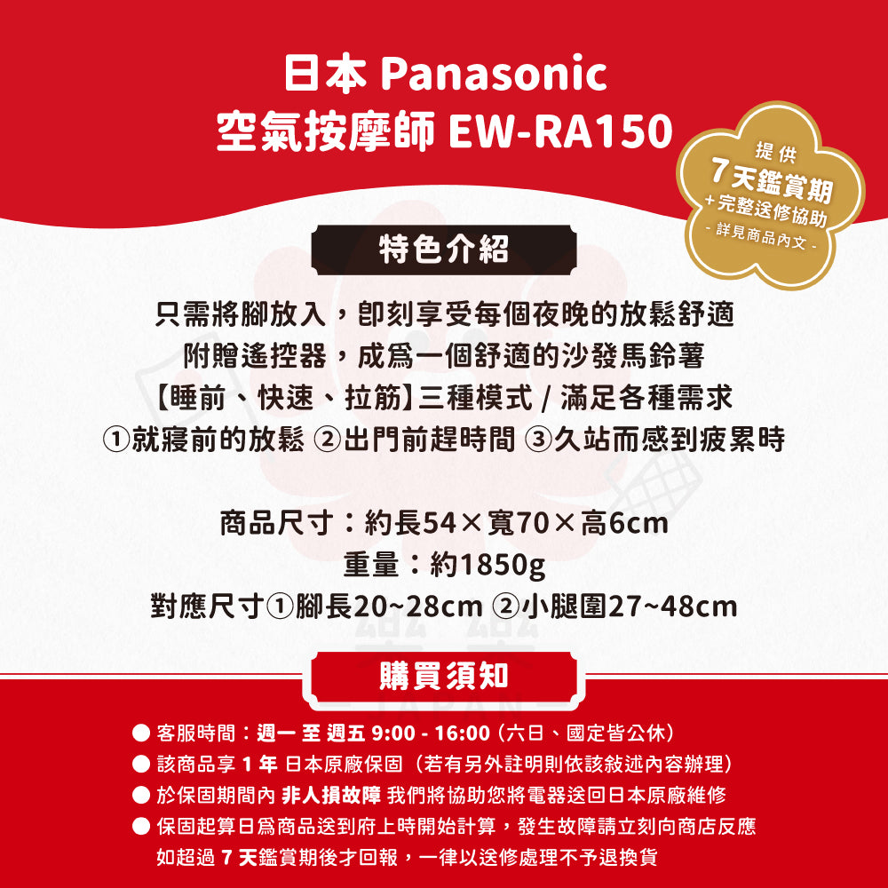 Panasonic 國際牌 空氣按摩師 EW-RA150 小腿按摩器
