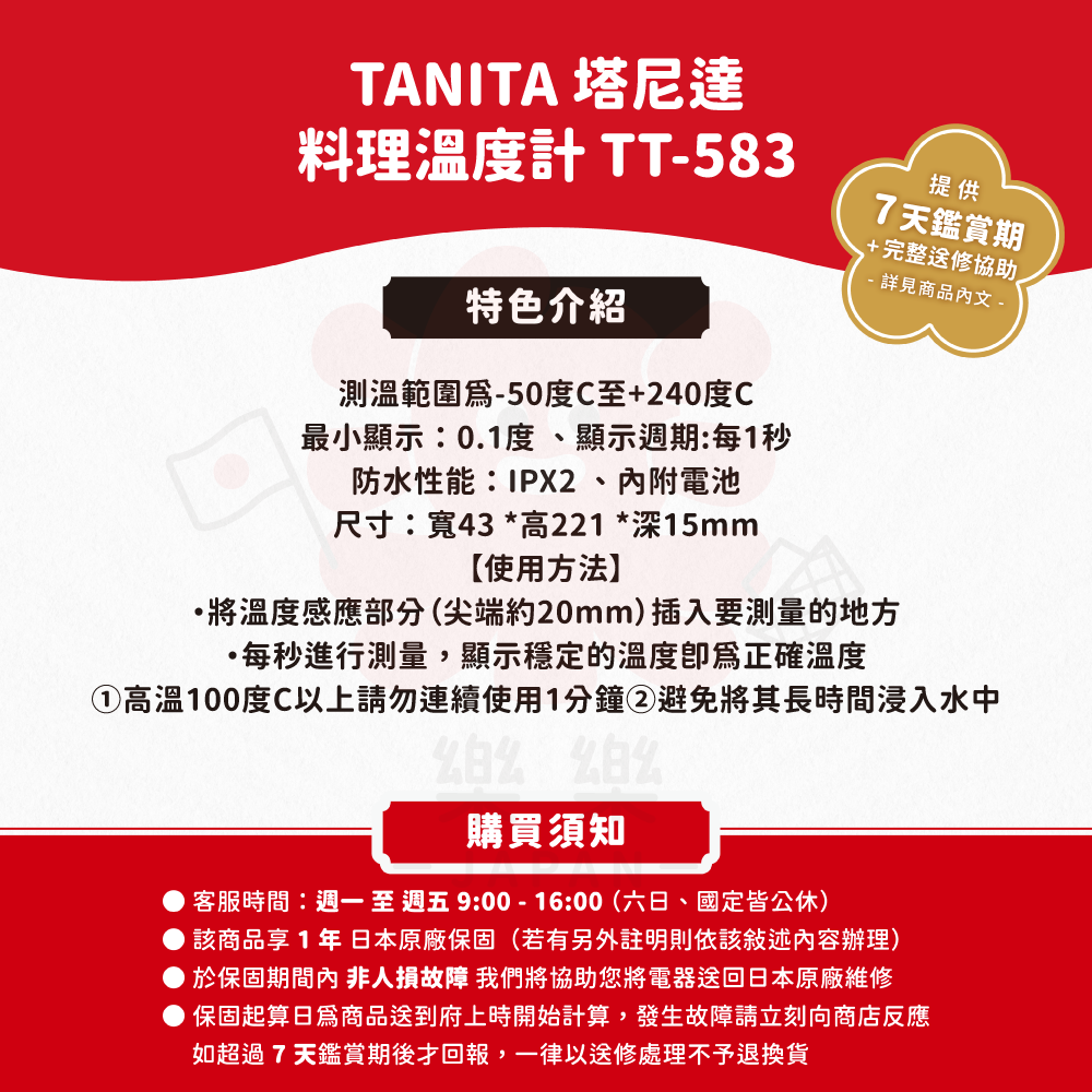 ※詳細說明請見樂樂Japan 購物保障・保固須知