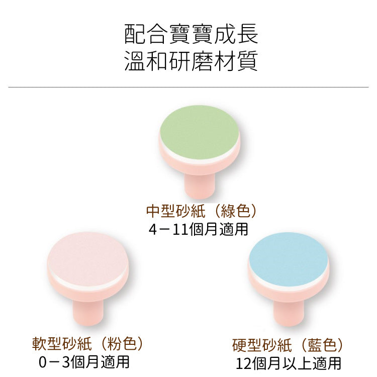 ③幼兒配件用途為修整指甲外型,絕對不可研磨幼兒甲面