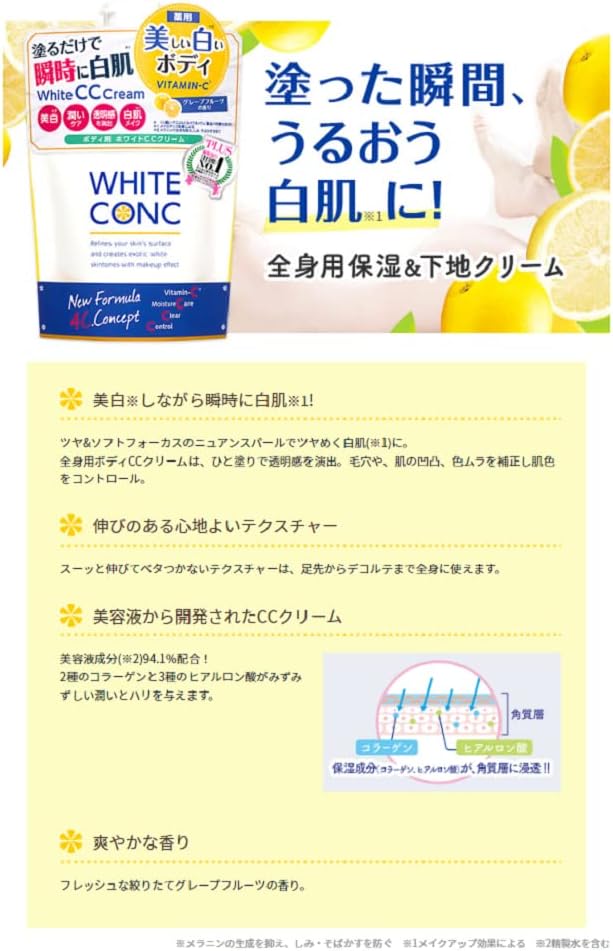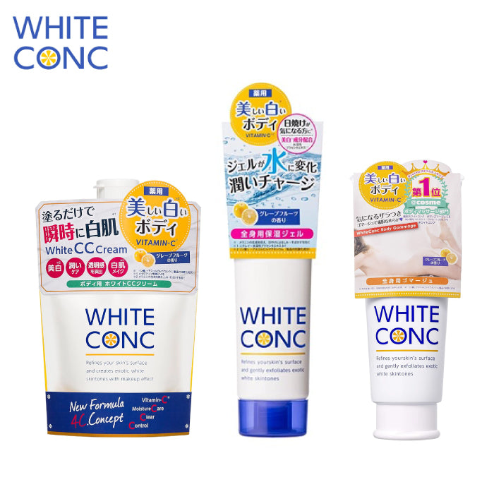 日本,WHITE CONC,身體CC霜,保濕水凝乳,磨砂膏,美白,透亮,乳液,維他命c,潤膚,煥白,保濕,立即變白,約會,COSPLAY,美白精華液,美白美容液,美白產品,精華液,美妝保養,日本藥妝,無香料,低刺激,藥妝,抑制黑色素,去斑,防止色斑,雀斑,提亮,美白提亮,傳明酸,黑色素,黑色素沉澱,提升肌膚透明度,暗沉肌救星,黝黑暗沉,透亮,斑點,角質拋光,去角質