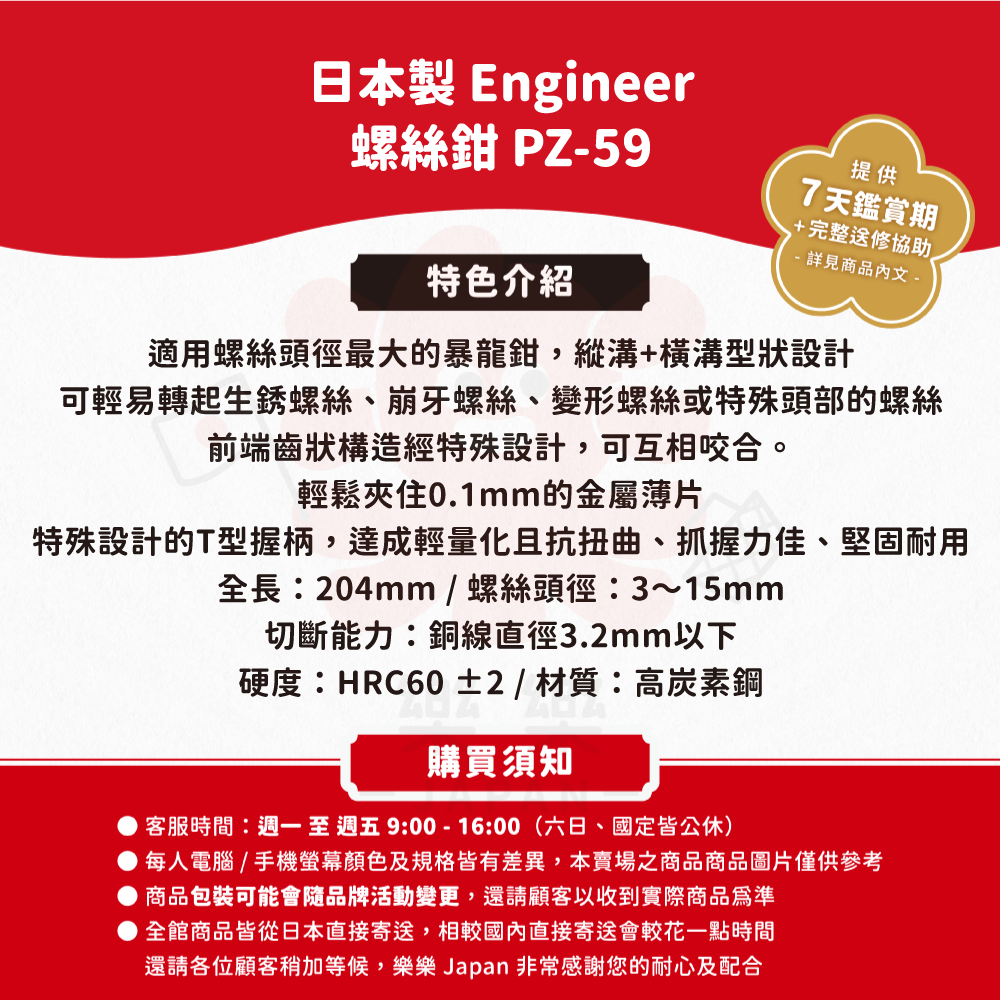 ENGINEER,PZ-59,螺絲鉗,204mm,生鏽滑牙螺絲救星,滑牙工具,暴龍鉗,鋼絲鉗,鋼鉗,鉗子