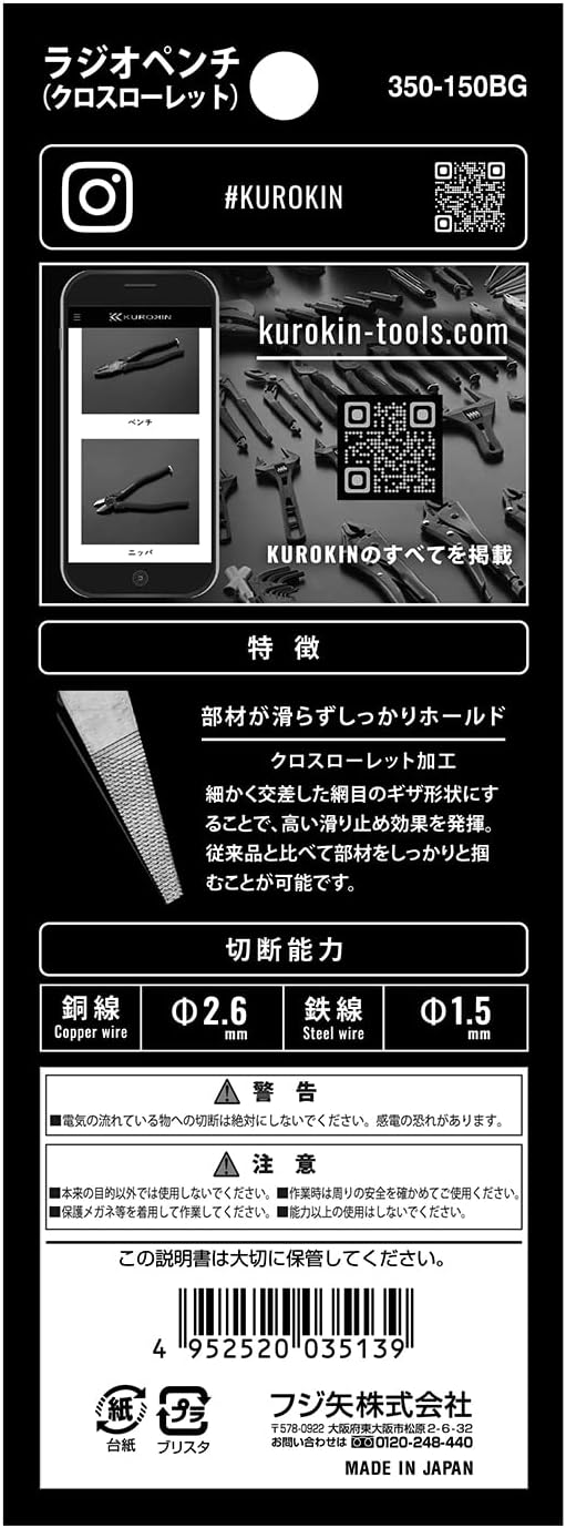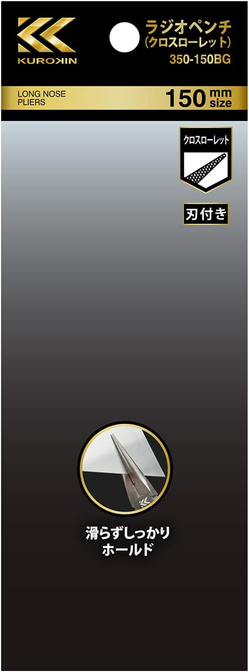 350-150BG :尖頭部分採細緻的交叉設計,能有效止滑,並能切斷銅線 φ2.6mm、鐵線 φ1.5mm