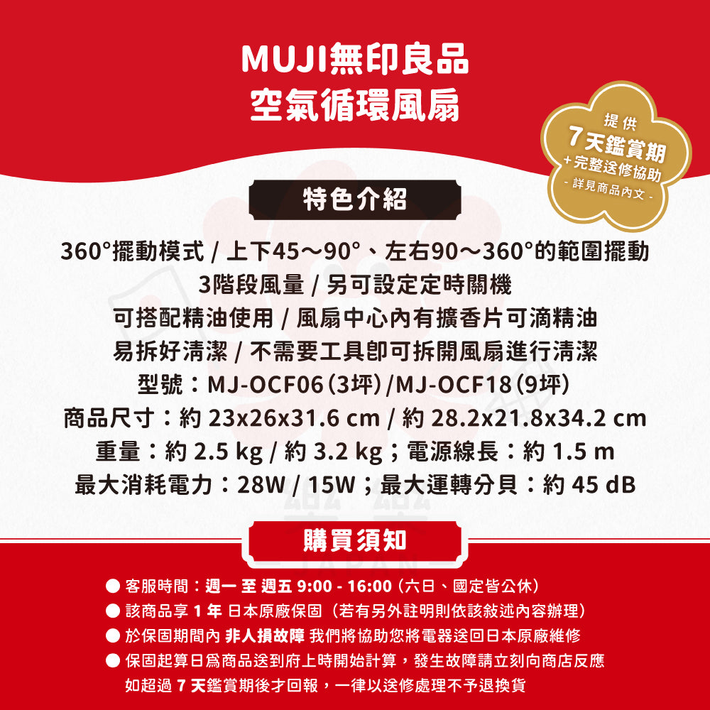 MUJI 無印良品 循環風扇 MJ-OCF06/18 MJ-OCFG06/18