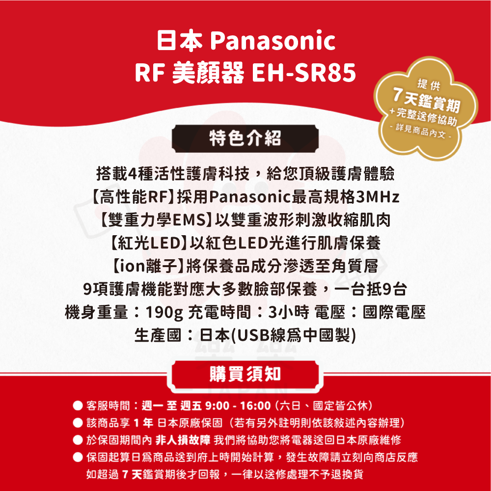 日本,Panasonic,國際牌,松下,電器,美膚儀,美容儀,家用美容儀,多功能美膚儀,RF射頻美膚儀,超聲波美膚儀,LED光療美膚儀,抗老美容儀,緊膚儀,導入儀,促進血液循環,緊致拉提,導入導出,保濕鎖水,舒緩冷熱敷,消除浮腫,超音波,微振動,EMS,微電流,膠原蛋白生成,細紋,皺紋,法令紋,木偶紋,收縮毛孔,淋巴排毒,浮腫,肌膚透亮,RF,美顏器,美容儀,離子導入,黑科技,國際電壓,IPX5,防水,Vitalift,EH-SR85,EH-SS85,導入凝膠,黑法杖,美容家電,日常保養,肌膚保養,美肌,網美,蘋果肌,海芙音波,鳳凰電波,亮白,嫩白