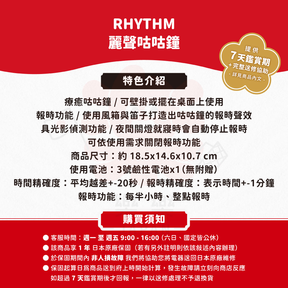 RHYTHM,麗聲,咕咕鐘,4RH797SR01,整點報時,布穀鳥時鐘,掛鐘,桌鐘,壁鐘,座掛兩用,居家擺設,4RH797SR04,時鐘,RHYTHM,PLUS,R797