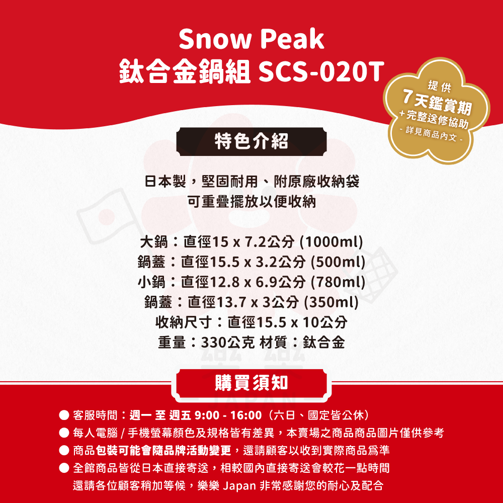 ※詳細說明請見樂樂Japan 購物保障・保固須知